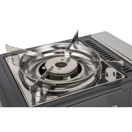 Fornello a cartuccia con accensione piezoelettrica e termocoppia.